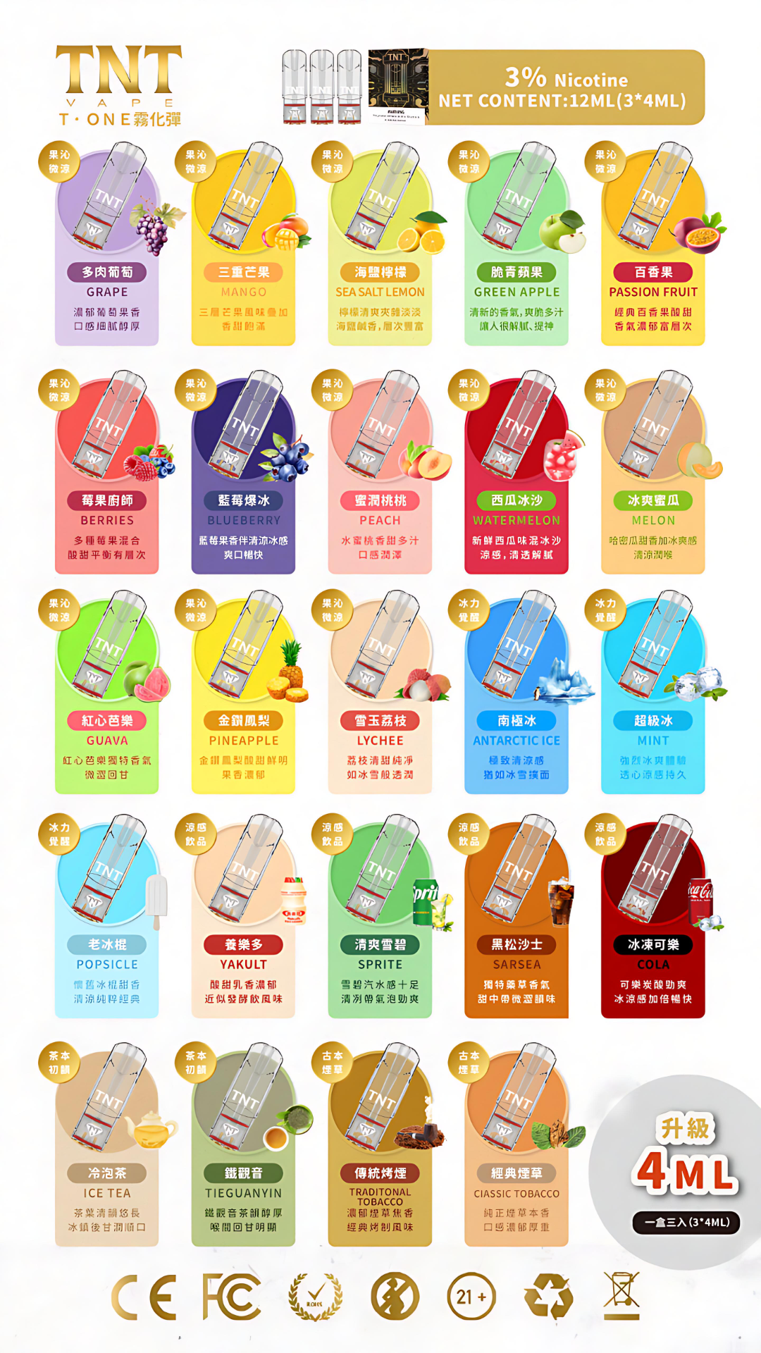 TNT煙彈 4ml一顆 一盒三入 通用一代電子煙 超高CP值